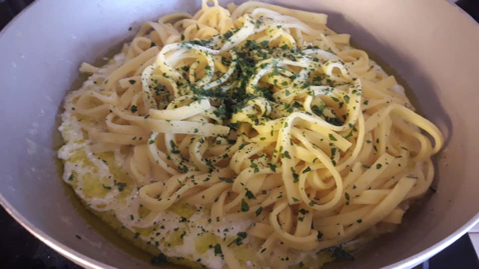 - Tagliatelle fresche 500gr- Olio evo q.b.- 1 Limone- 300 ml di latte- Prezzemolo q.b.- 1 cucchiaio di pan grattato