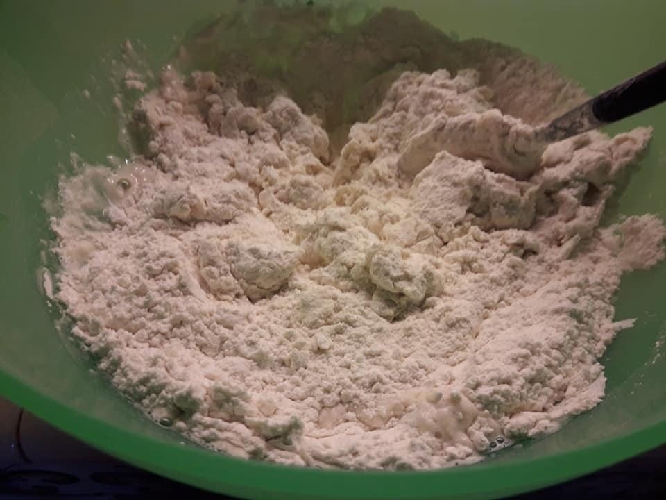 in una ciotola verso le due farine ed un cucchiaino di sale, un filo di olio Evo e mescolo... da parte in una tazza (circa 240ml) di acqua tiepida (non troppo calda altrimenti il lievito si cuoce) sciolgo il lievito di birra insieme ad un pizzico di zucchero ...
