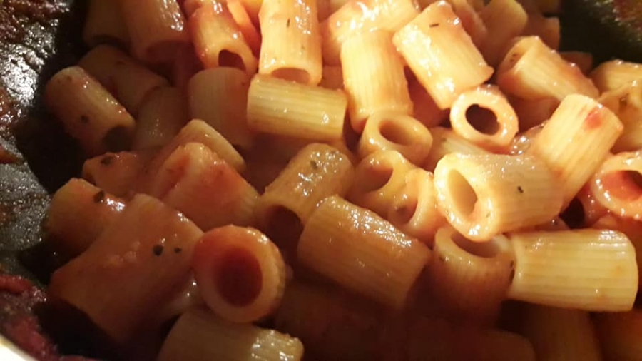 Mezze maniche al sugo di Polpette lenticchie e ceci