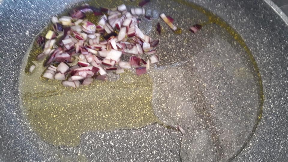 - far soffriggere in un filo di olio evo la cipolla rossa a pezzettini per poco e poi continuare aggiungendo vino bianco 1/2 bicchiere