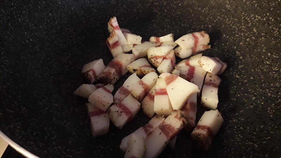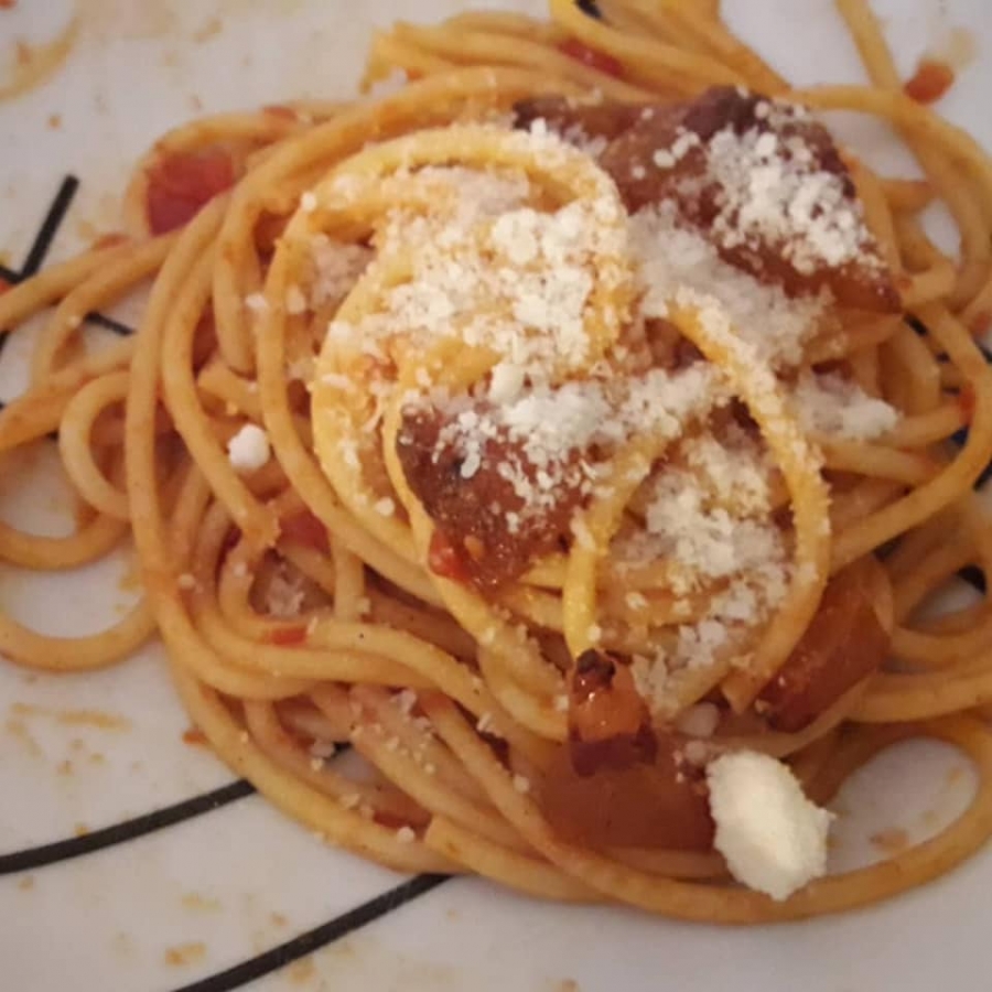 L’amatriciana nasce con il condimento in bianco e solo alla fine del 1700, con l’avvento del pomodoro, il piatto è preparato con gli stessi ingredienti e l’aggiunta del pomodoro.