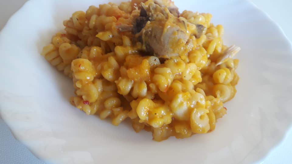 Fusilli con vellutata di zucca e sgombro