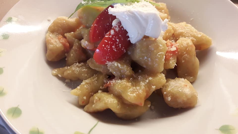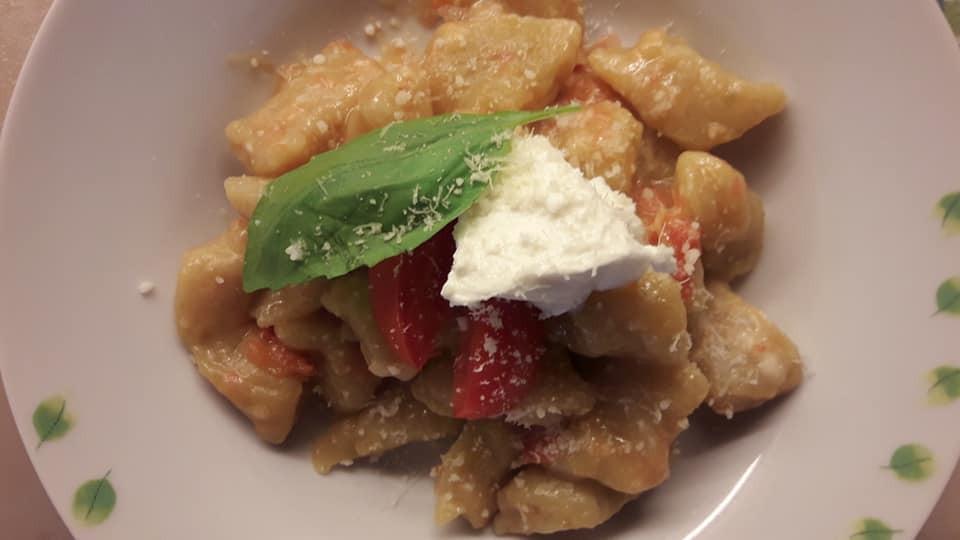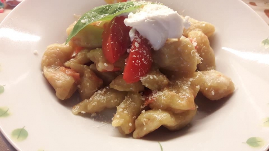 Gnocchi di peperoni con pomodorini, ricotta e basilico