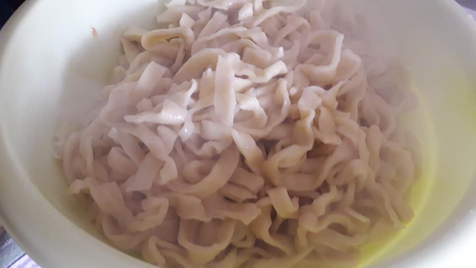 Fettuccine all'uovo, ragù di salsiccia e olive Fettuccine all'uovo, ragù di salsiccia e olive