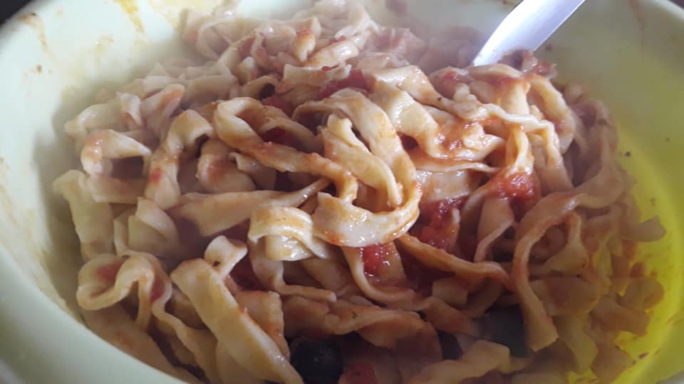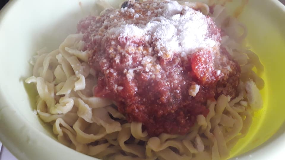 Fettuccine all'uovo, ragù di salsiccia e olive