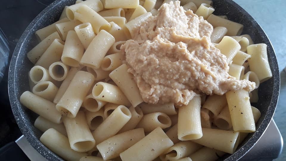 Paccheri con crema di ceci e guanciale