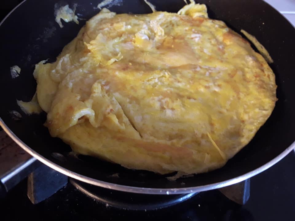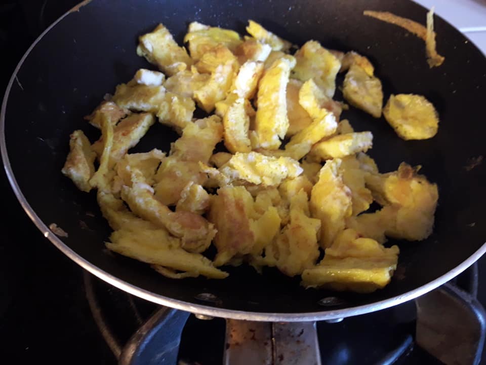 Sbatti le uova in una terrina, fai scaldare 2 cucchiai di olio di semi in una padella o wok, aggiungi le uova e falle strapazzare... quando la frittatina è pronta sminuzzala con l'aiuto di una paletta di plastica ...